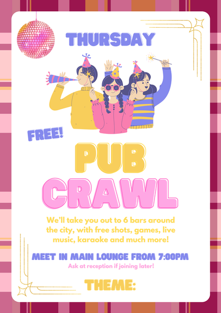 and our lounge is the perfect place to meet new friends. Explore our huge selection of board games, play a game of pool or bring your own alcohol into the hostel and play some drinking games in the heart of High Street. Our lounge is the perfect place to unwind after a long day of exploring the city and the meeting point for our weekly events!
